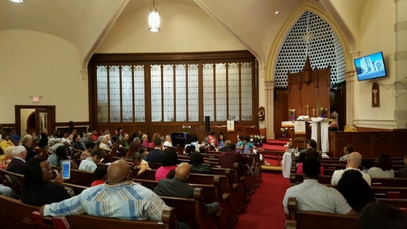 The Derry Street United Methodist church is a Gothic Revival-styled church building completed in 1908 as the Derry Street United Brethren and Evangelical Church. The church serves as a neighborhood and community center for the surrounding South Allison Hill area. Last summer, in a unique partnership between Tri-County Housing Development Corporation (TCHDC) and Habitat for Humanity of Greater Harrisburg, more than 120 young people came to Harrisburg to participate in a massive, week-long “Building Blitz” in Allison Hill. Many of the students worshipped at Derry Street on Sunday, June 24, 2018. They were all on a faith-based mission trip from the Woods Memorial Presbyterian Church, based in Severna Park, Maryland, to build three houses in seven days.