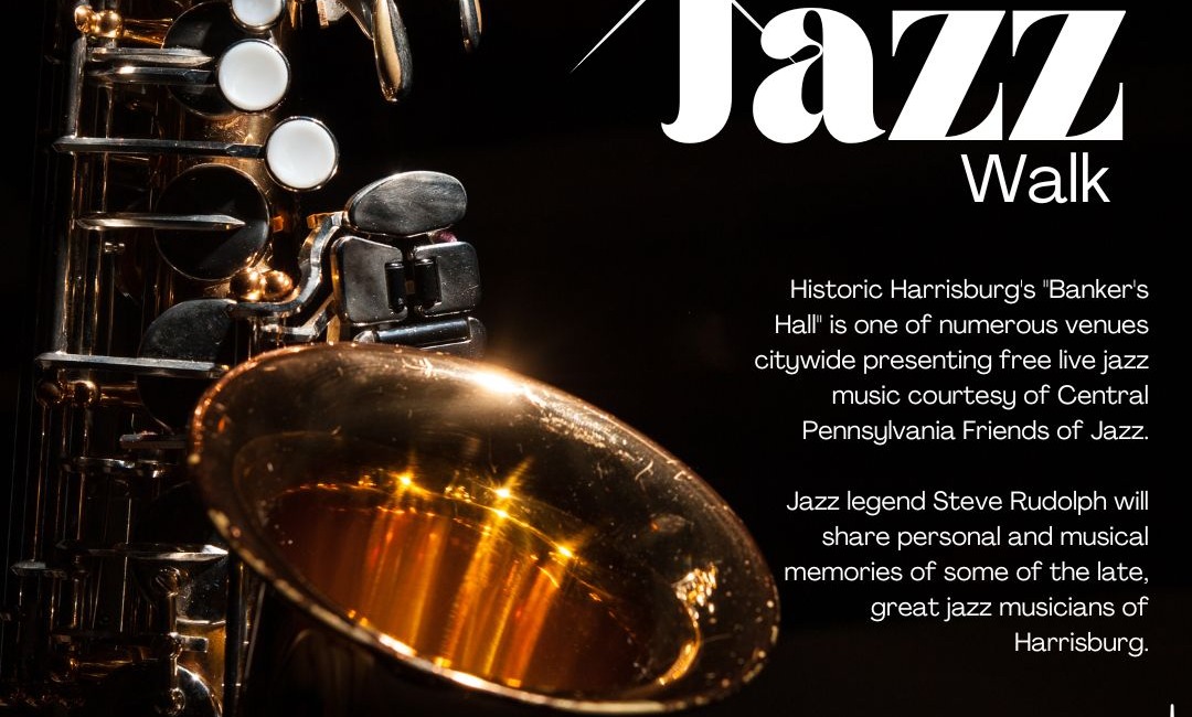 On Friday, September 9th, Historic Harrisburg’s “Banker’s Hall” is one of numerous venues citywide presenting free live jazz music courtesy of Central Pennsylvania Friend of Jazz. Jazz legend Steve Rudolph will share personal and musical memories of some of the late, great jazz musicians of Harrisburg.