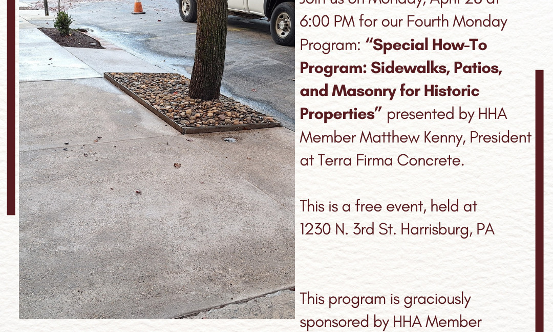 Contact HHA for more information: info@historicharrisburg.org or (717) 233-4646.